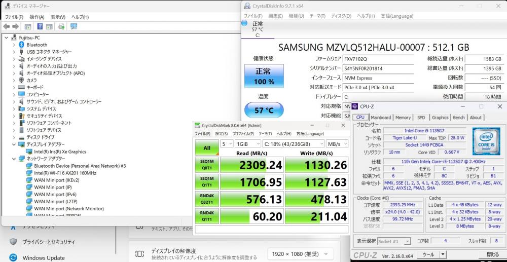 | CPU: 超高速 Intel 卓越性能 第11世代Core i5-1135G7 2.4Ghz、 4コア8スレッド (ターボ・ブースト利用時の最大周波数 4.2GHz) |