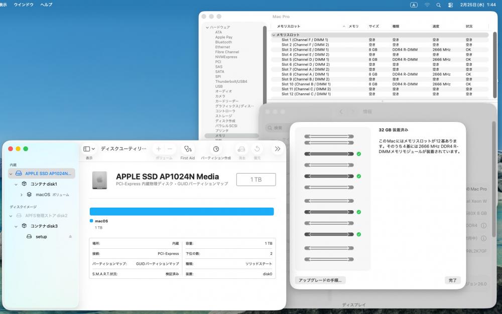 | メモリ: 快適超大容量 32GB メモリースロット合計:12 (空き8) |