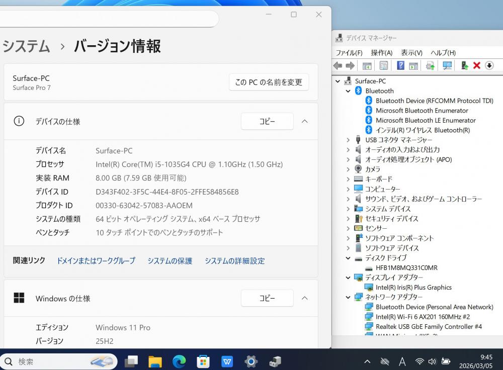 | 型番: マイクロソフト Surface Pro7 (Wi-Fi) Model.1866 |