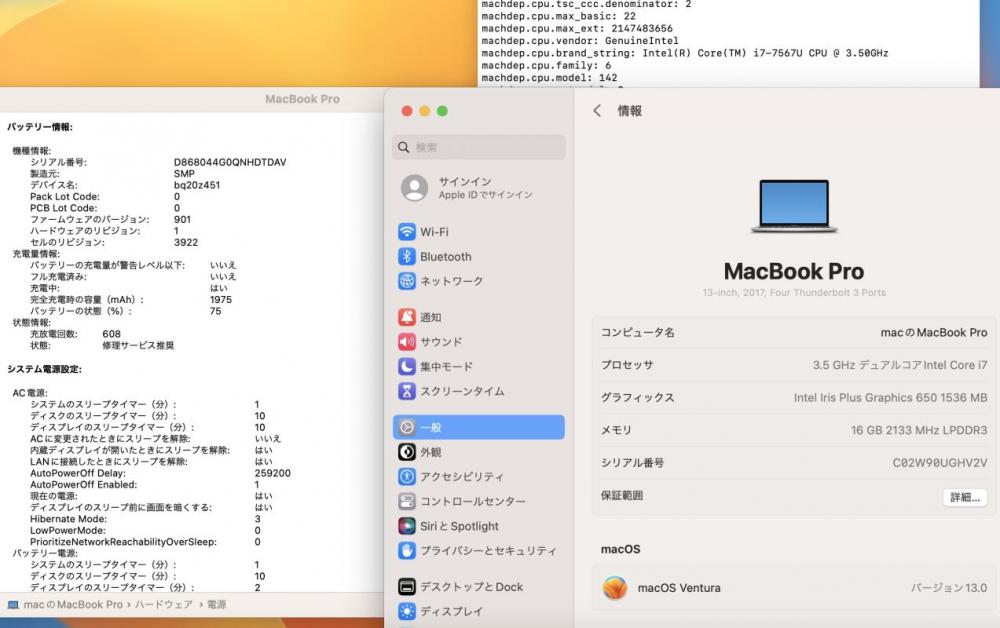 | CPU: 七世代Core i7-7567u 3.5Ghz、 (ターボ・ブースト利用時の最大周波数 4.0GHz) |