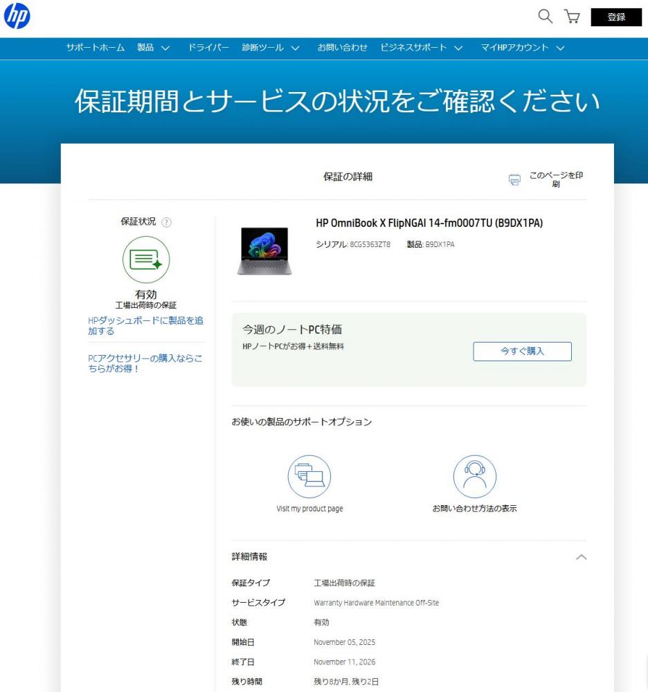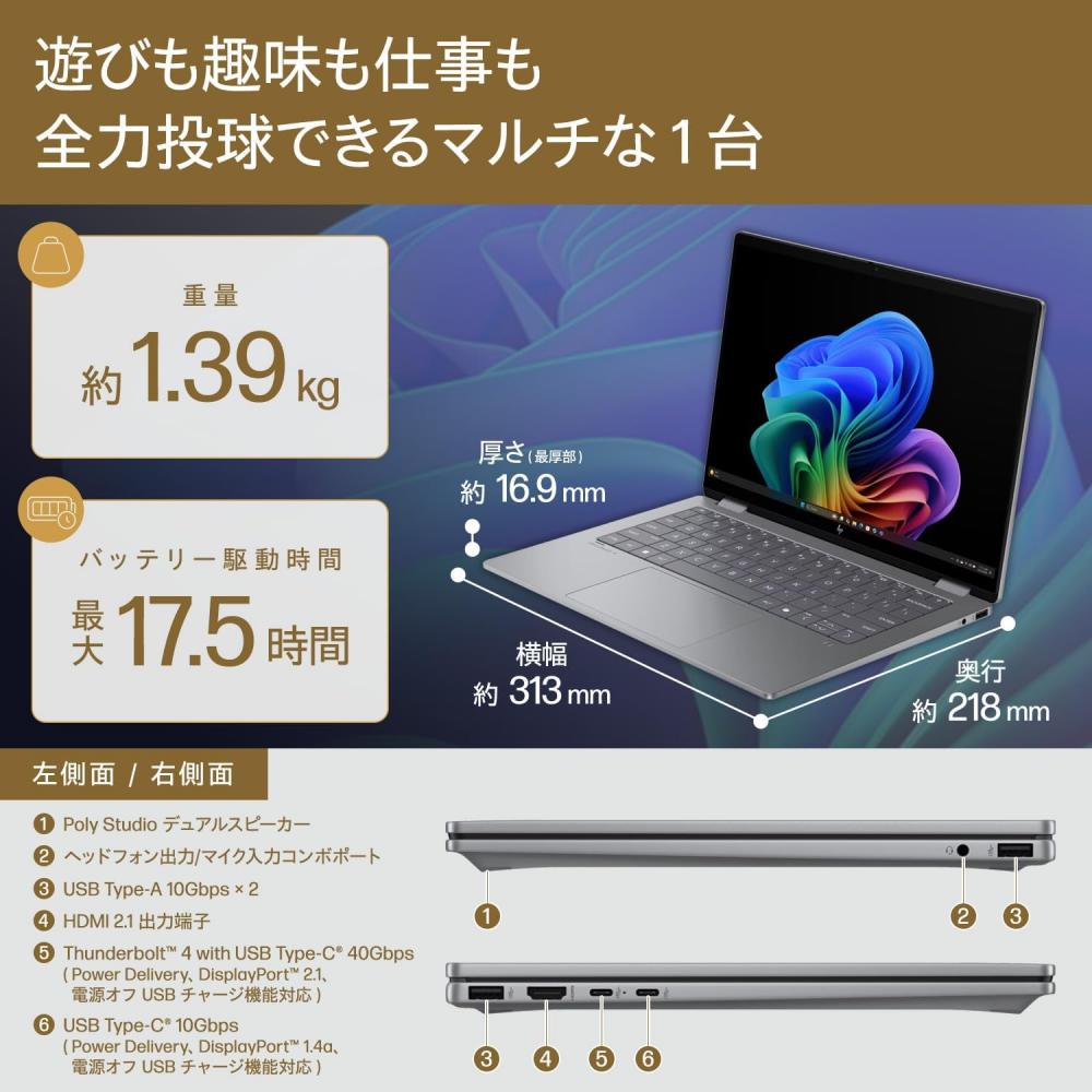 | 型番: HP OmniBook X Flip AI 14-fm0007TU パフォーマンスモデル (B9DX1PA) |