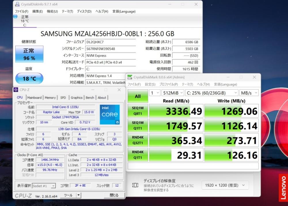 | CPU: 超高速 Intel 10コア 卓越性能 第13世代Core i5-1335U 1.3Ghz、 10コア12スレッド (ターボ・ブースト利用時の最大周波数 4.6GHz) |