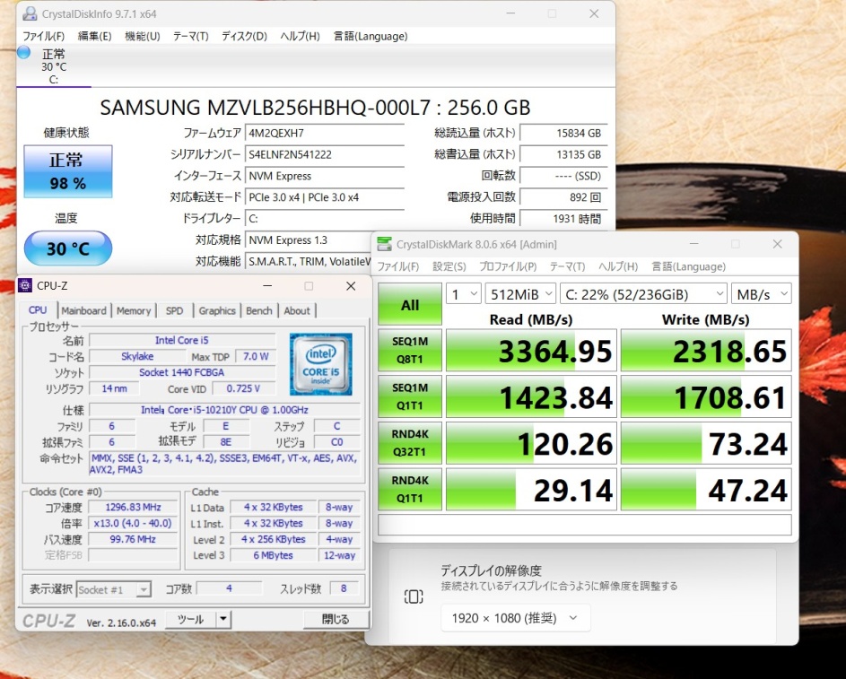 | ハードディスク: 爆速NVMe式 SSD 256GB超高速ドライブを搭載 静かで耐衝撃性に優れ、OSやプログラムなどのソフトの起動速度が大幅に高速化します!! |