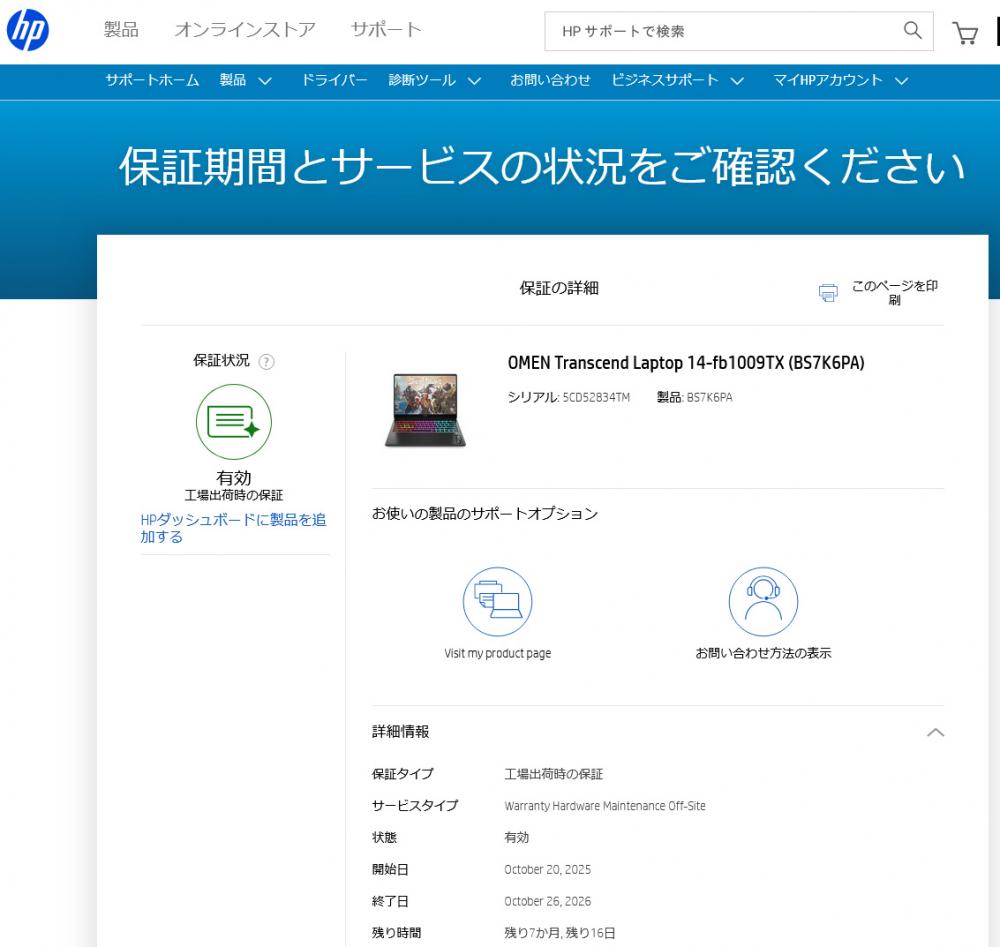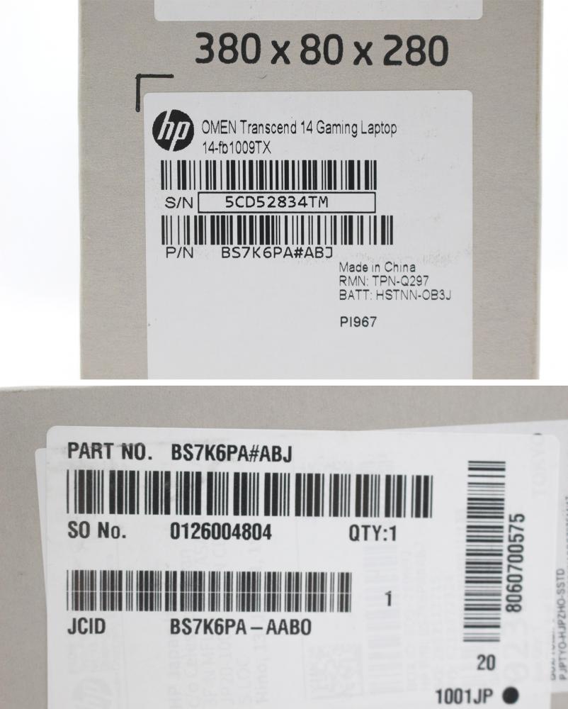 | 型番: HP OMEN by HP Transcend AI Gaming Laptop 14-fb1009TX (BS7K6PA) パフォーマンスモデルG2 |