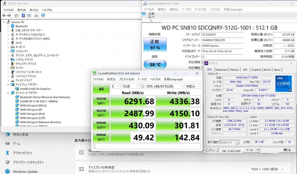 | CPU: 超高速 Intel 10コア 卓越性能 第12世代Core i7-1255U 1.7Ghz、 10コア12スレッド (ターボ・ブースト利用時の最大周波数 4.7GHz) |