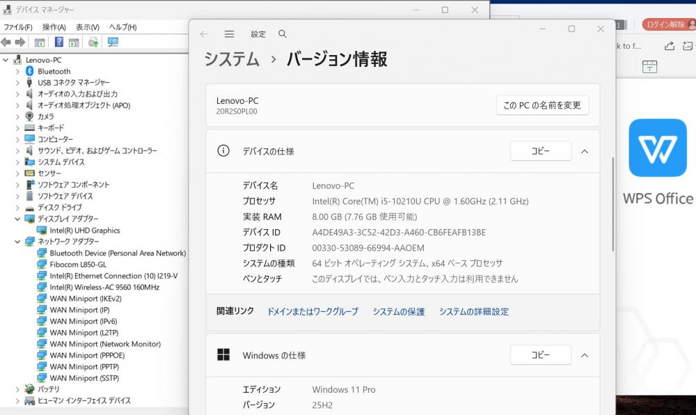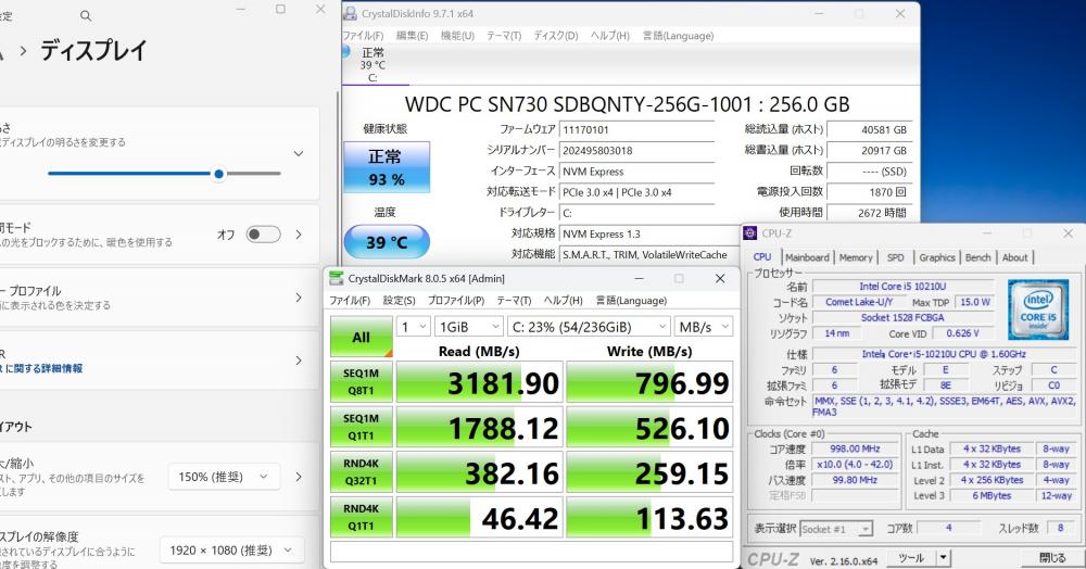 | CPU: 超高速 Intel 超高性能 第10世代Core i5-10210U 1.6Ghz、 4コア8スレッド (ターボ・ブースト利用時の最大周波数 4.2GHz) |