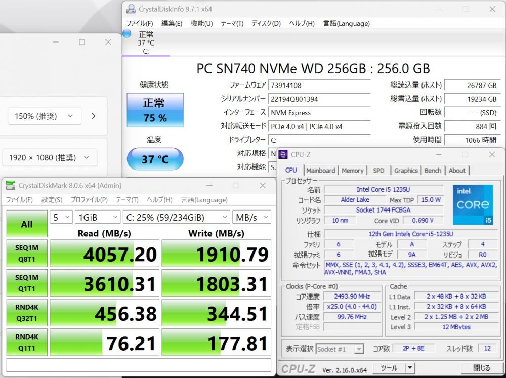 | CPU: 超高速 Intel 10コア 卓越性能 第12世代Core i5-1235U 1.3Ghz、 10コア12スレッド (ターボ・ブースト利用時の最大周波数 4.4GHz) |