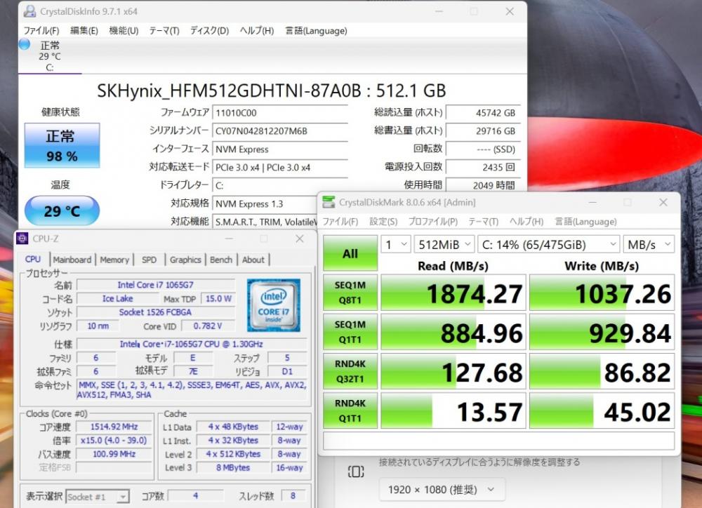 | ハードディスク: 爆速NVMe式 SSD 512GB超高速ドライブを搭載 静かで耐衝撃性に優れ、OSやプログラムなどのソフトの起動速度が大幅に高速化します!! |