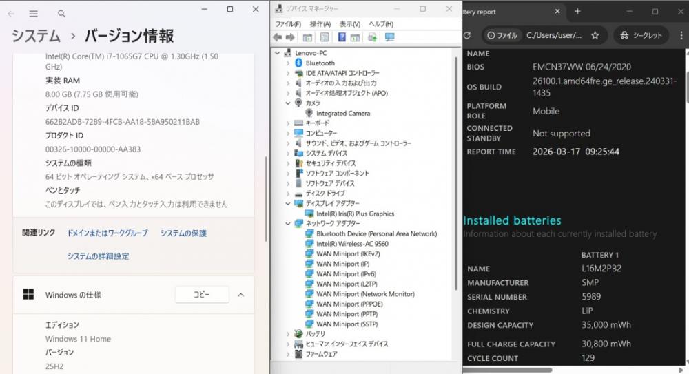 | 型番: Lenovo IdeaPad 3 14IIL05 |