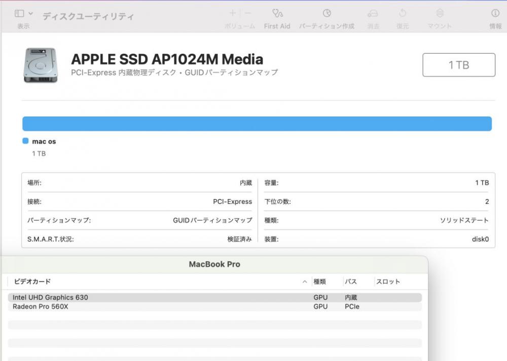 | リカバリー: (インターネットリカバリー macOS 10.13)あり、 いつでもパソコンを工場出荷時の状態に戻すことできます。 初心者でもご安心ください。 |