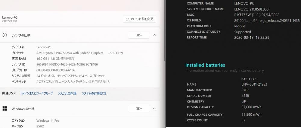 | 型番: Lenovo ThinkPad L15 Gen3 |