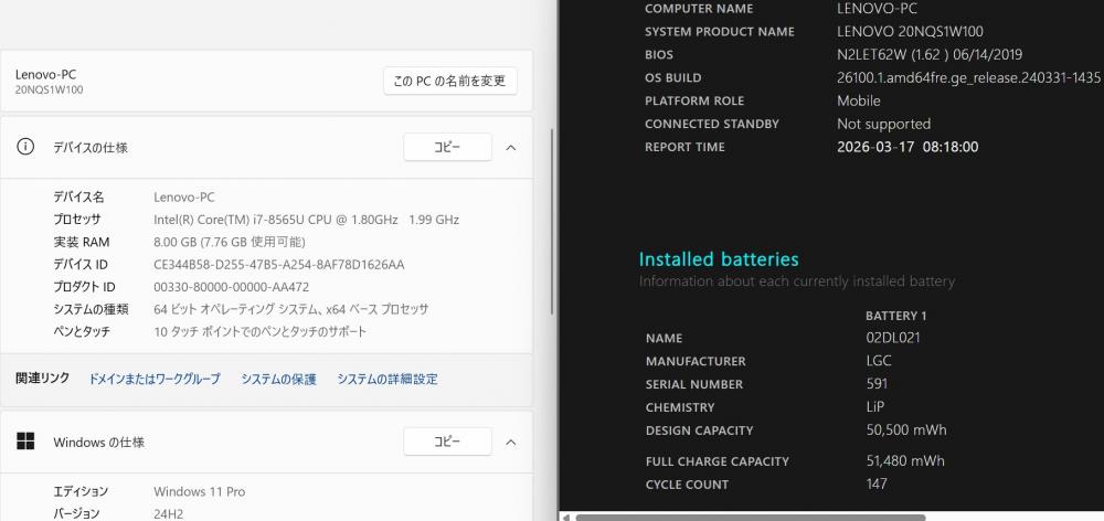 | 型番: Lenovo ThinkPad X390 Yoga |