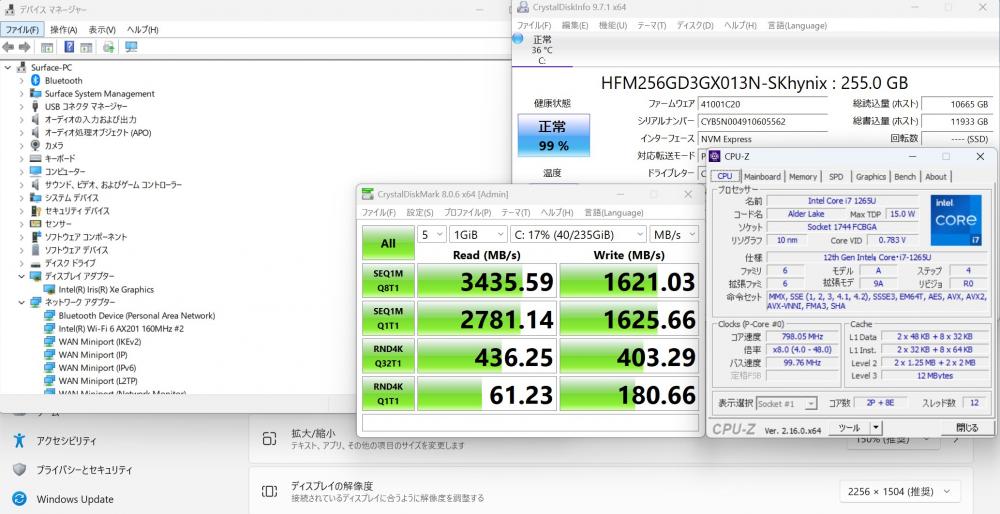 | CPU: 超高速 Intel 10コア 卓越性能 第12世代Core i7-1265U 1.8Ghz、 10コア12スレッド (ターボ・ブースト利用時の最大周波数 4.8GHz) |