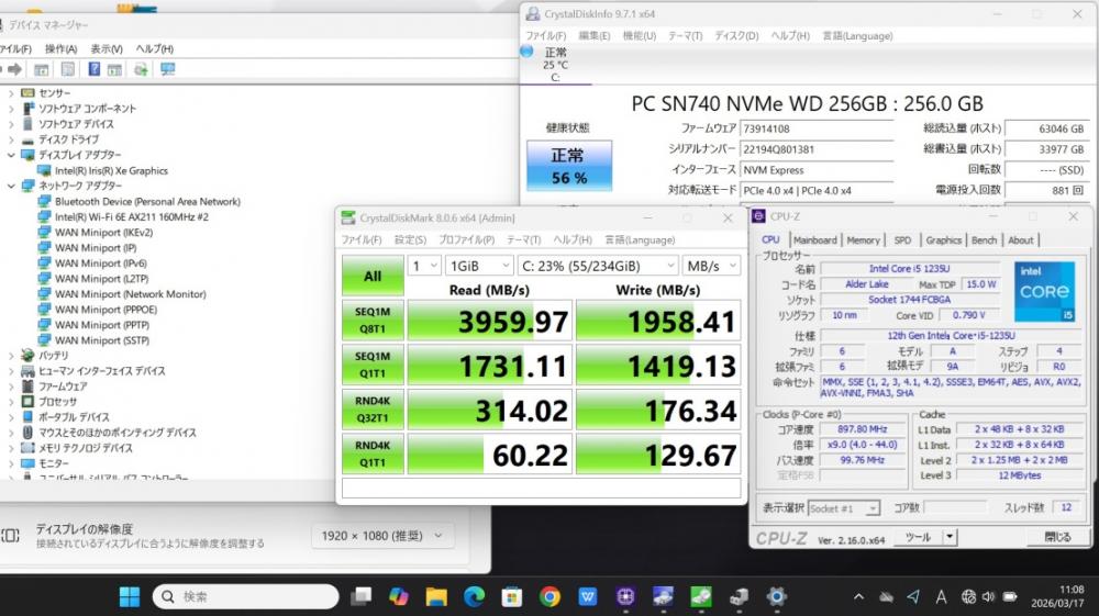 | CPU: 超高速 Intel 10コア 卓越性能 第12世代Core i5-1235u 1.3Ghz、 10コア12スレッド (ターボ・ブースト利用時の最大周波数 4.4GHz) |