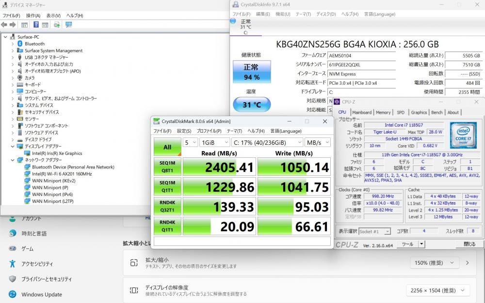 | CPU: 超高速 Intel 卓越性能 第11世代Core i7-1185G7 3.0Ghz、 4コア8スレッド (ターボ・ブースト利用時の最大周波数 4.8GHz) |