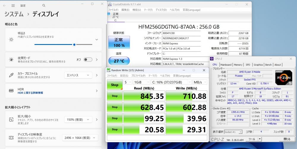 | ディスプレイ: 2K液晶 タッチ 15インチ光沢液晶 高輝度 広視野角 LEDバックライト 2496 x 1664解像度———— |