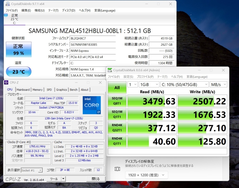 | CPU: 超高速 Intel 10コア 卓越性能 第13世代Core i7-1355U 1.7Ghz、 10コア12スレッド (ターボ・ブースト利用時の最大周波数 5.0GHz) |