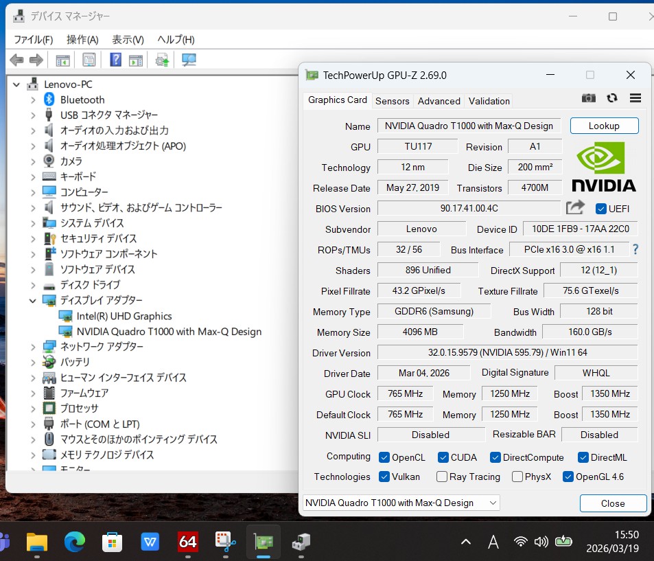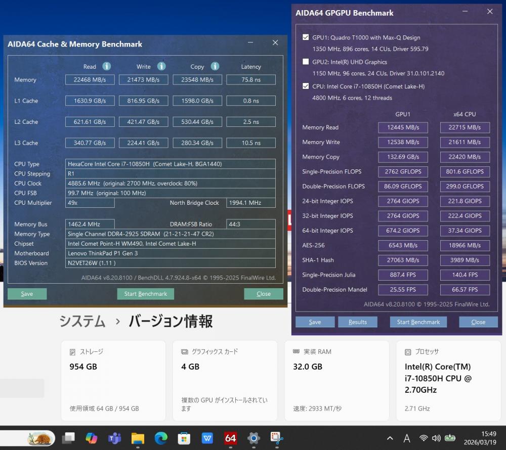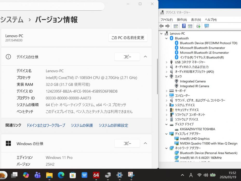 | 型番: Lenovo ThinkPad P1 Gen3 Type-20TJ |