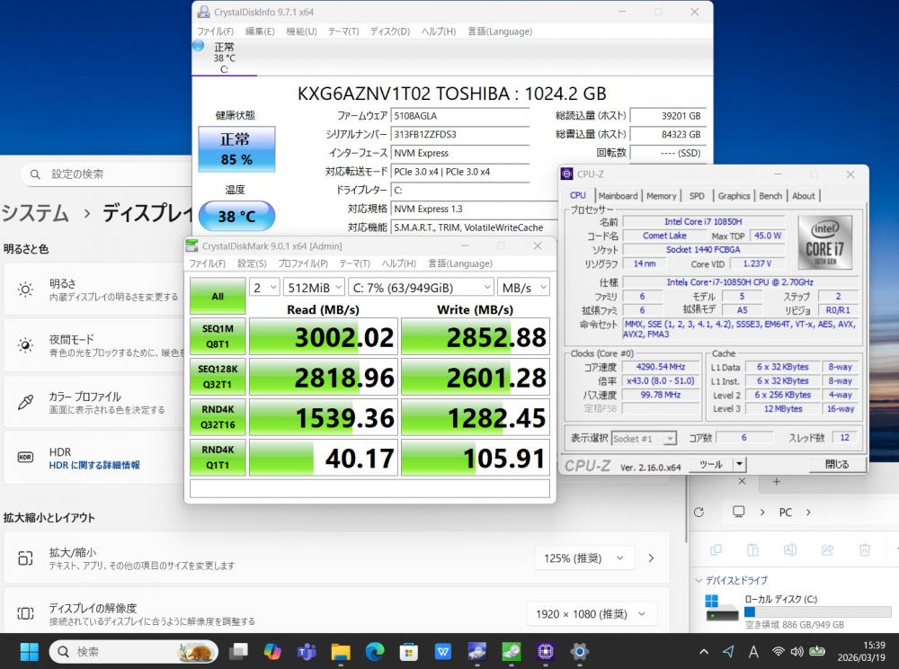 | ハードディスク: (既定の場合) 爆速NVMe式 SSD 1024GB超高速ドライブを搭載 静かで耐衝撃性に優れ、OSやプログラムなどのソフトの起動速度が大幅に高速化します!! |