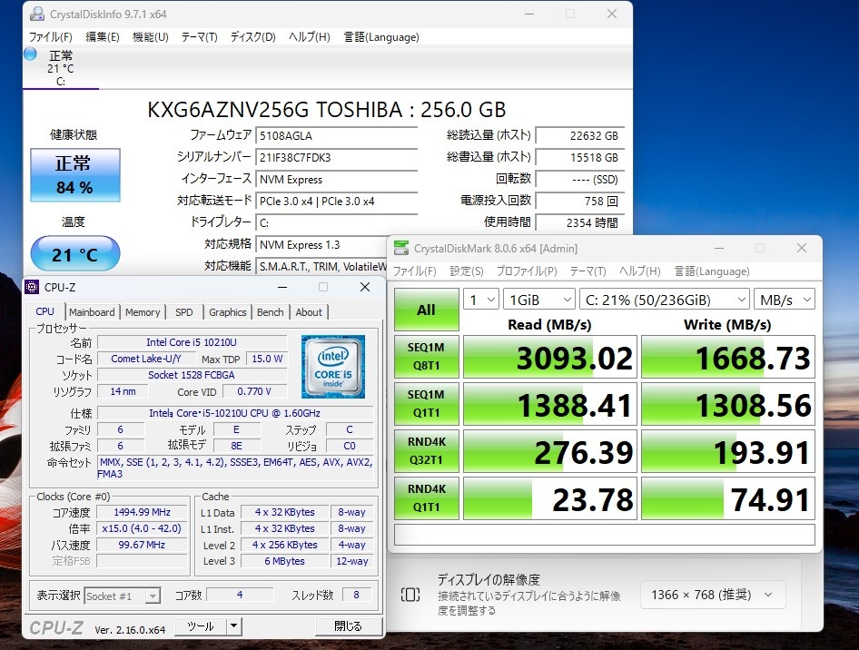 CPU:    超高速 Intel 超高性能 第10世代Core i5-10210U 1.6Ghz、 4コア8スレッド (ターボ・ブースト利用時の最大周波数 4.2GHz)