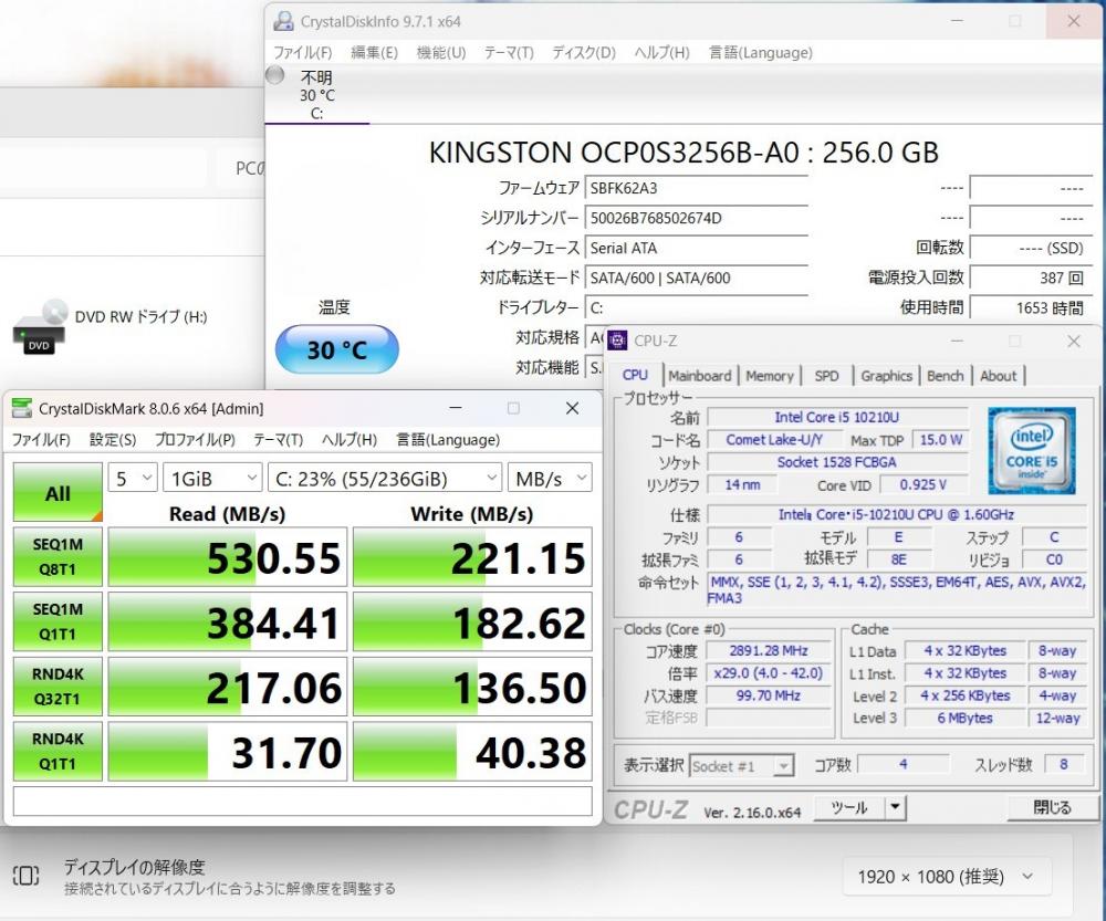 | CPU: 超高速 Intel 超高性能 第10世代Core i5-10210U 1.6Ghz、 4コア8スレッド (ターボ・ブースト利用時の最大周波数 4.2GHz) |