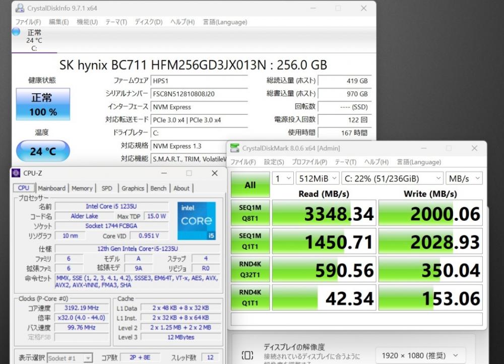 | CPU: 超高速 Intel 10コア 卓越性能 第12世代Core i5-1235U 1.3Ghz、 10コア12スレッド (ターボ・ブースト利用時の最大周波数 4.4GHz) |