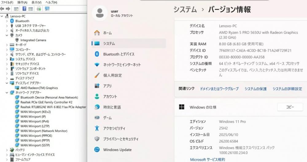 | CPU: 超高速 高性能 AMD Ryzen 5-5650u 2.3Ghz、 6コア12スレッド (ターボ・ブースト利用時の最大周波数 4.2GHz) |