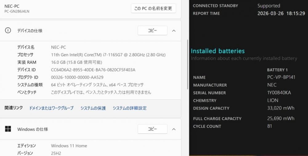 | 型番: NEC LAVIE PC-GN286J4GN |