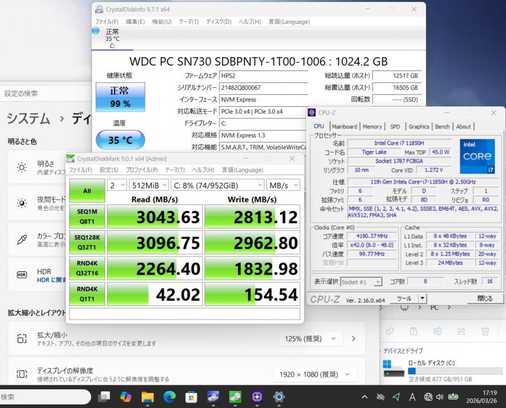 | ハードディスク: 爆速NVMe式 SSD 1024GB超高速ドライブを搭載 静かで耐衝撃性に優れ、OSやプログラムなどのソフトの起動速度が大幅に高速化します!! |