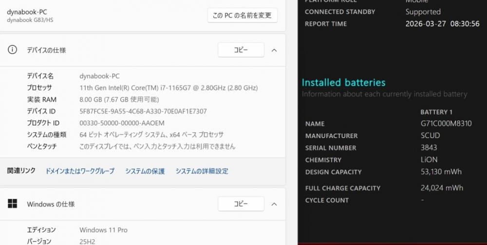 | 型番: TOSHIBA dynabook G83HS |