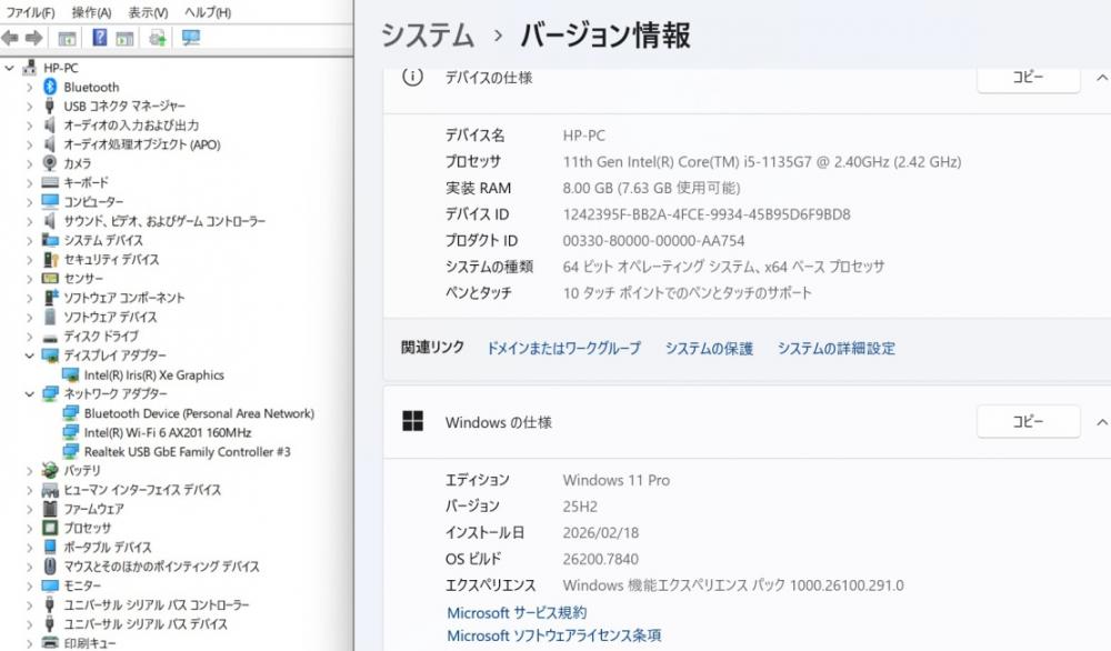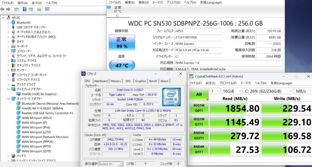 | CPU: 超高速 Intel 卓越性能 第11世代Core i5-1135G7 2.4Ghz、 4コア8スレッド (ターボ・ブースト利用時の最大周波数 4.2GHz) |