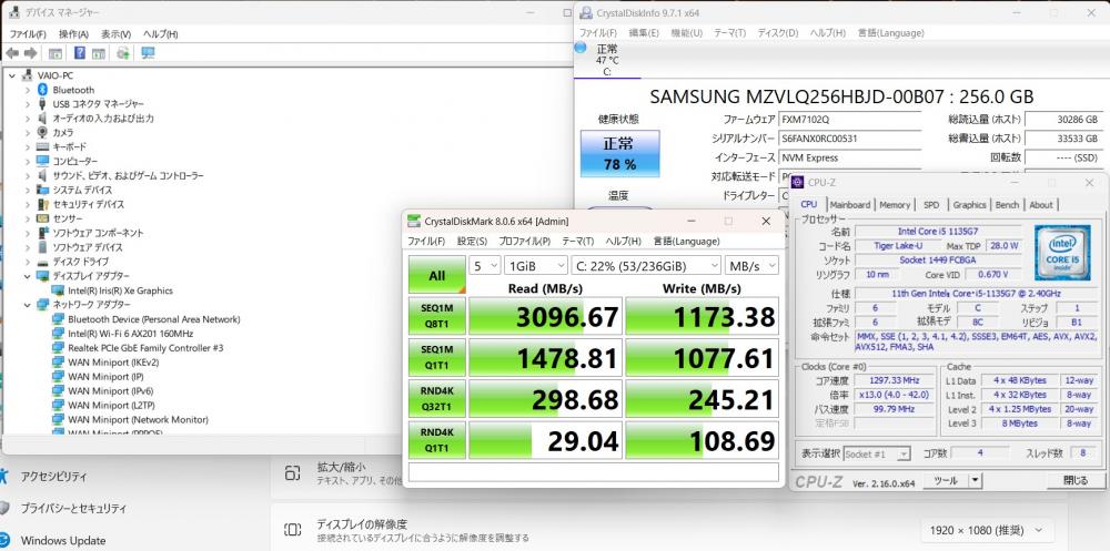 | CPU: 超高速 Intel 卓越性能 第11世代Core i5-1135G7 2.4Ghz、 4コア8スレッド (ターボ・ブースト利用時の最大周波数 4.2GHz) |