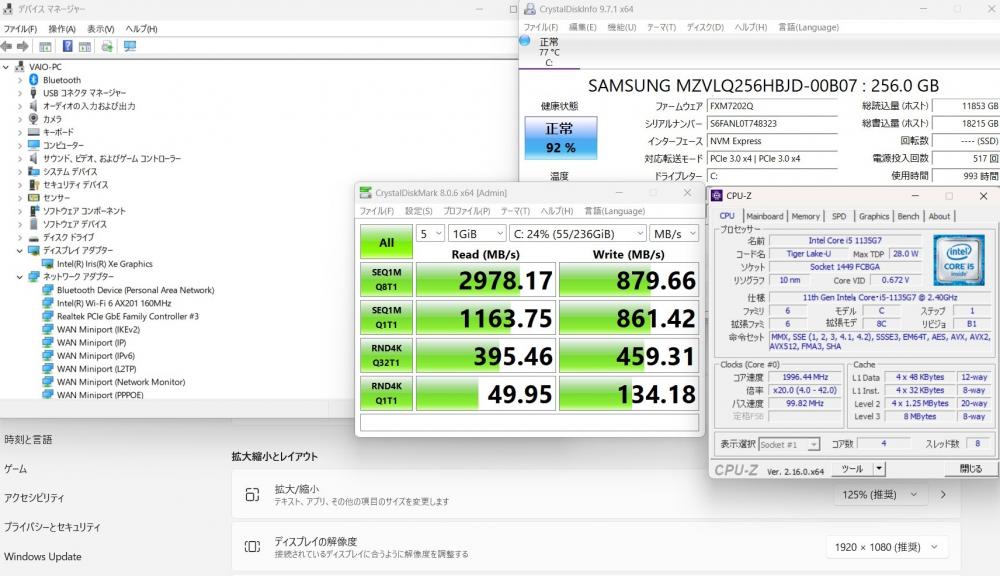 CPU:    超高速 Intel 卓越性能 第11世代Core i5-1135G7 2.4Ghz、 4コア8スレッド (ターボ・ブースト利用時の最大周波数 4.2GHz)