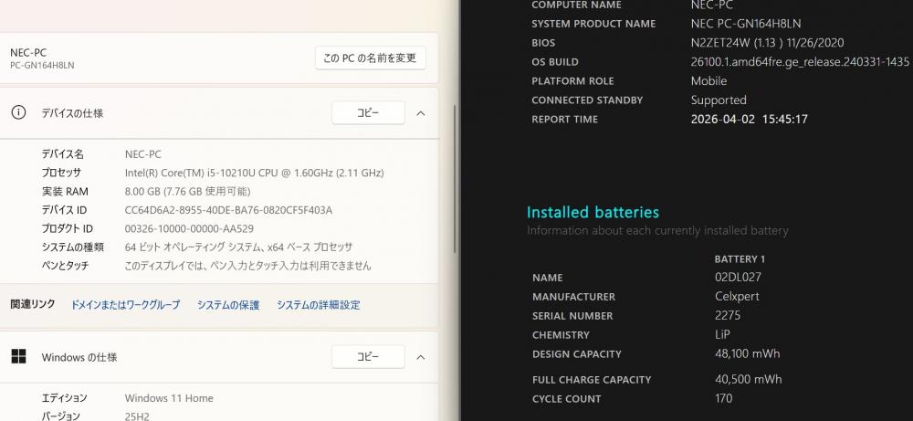 | 型番: NEC LAVIE PC-GN164H8LN |