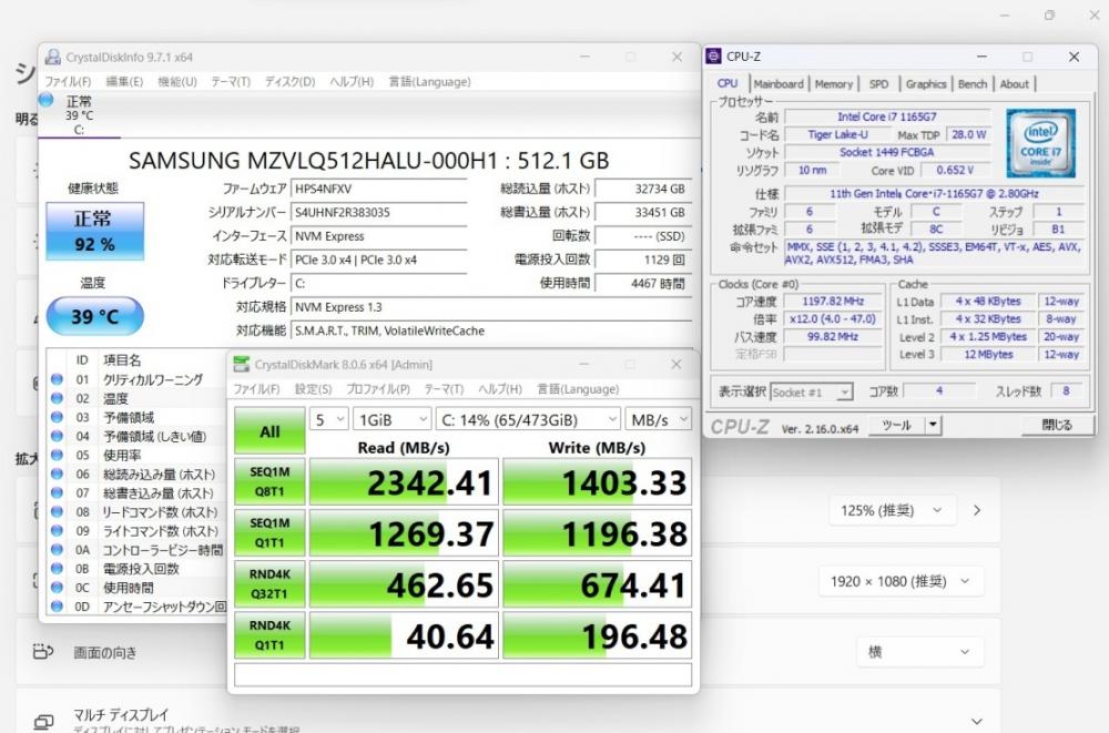 | CPU: 超高速 Intel 卓越性能 第11世代Core i7-1165G7 2.8Ghz、 4コア8スレッド (ターボ・ブースト利用時の最大周波数 4.7GHz) |