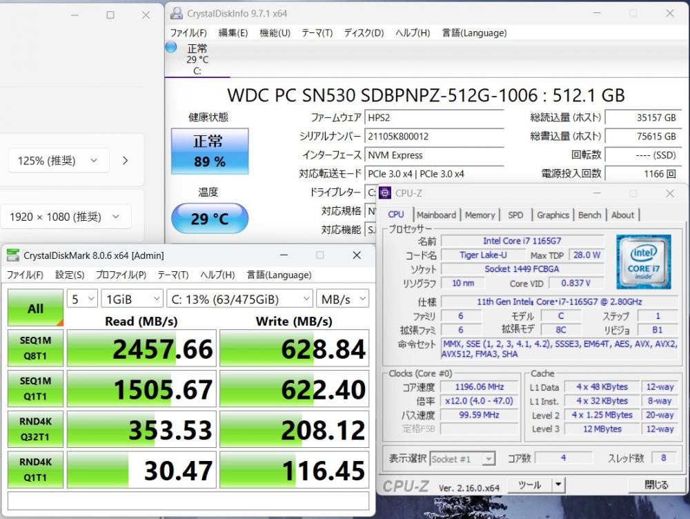 | CPU: 卓越性能 第11世代Core i7-1165G7 2.8Ghz、 4コア8スレッド (ターボ・ブースト利用時の最大周波数 4.7GHz) |