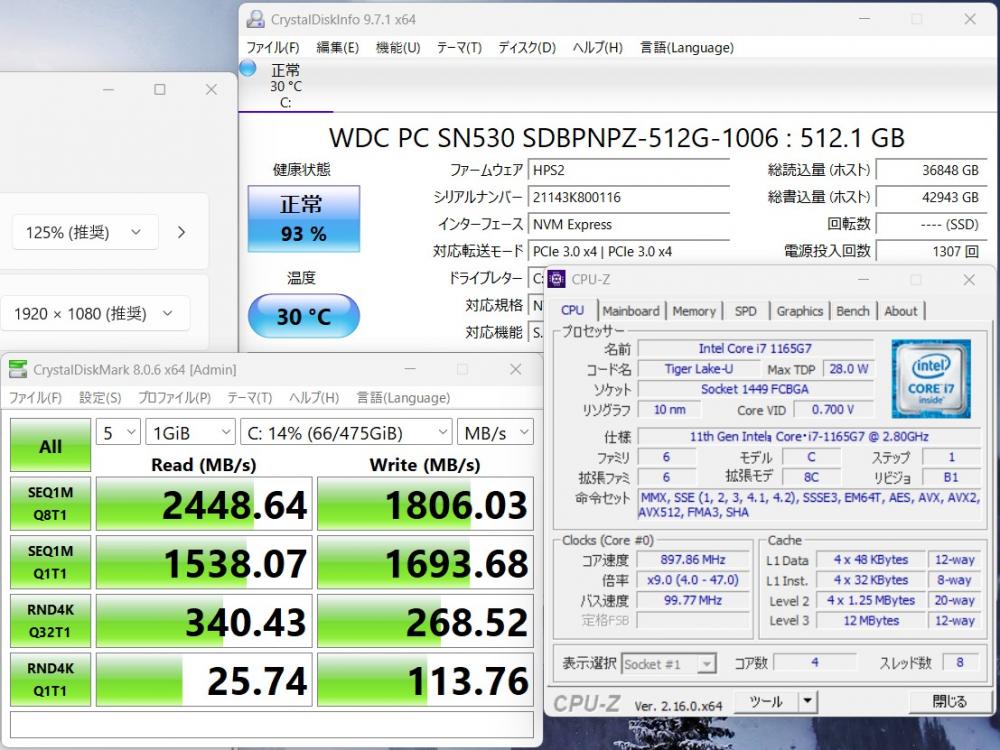 | CPU: 超高速 Intel 卓越性能 第11世代Core i7-1165G7 2.8Ghz、 4コア8スレッド (ターボ・ブースト利用時の最大周波数 4.7GHz) |