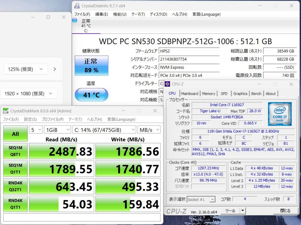 | CPU: 卓越性能 第11世代Core i7-1165G7 2.8Ghz、 4コア8スレッド (ターボ・ブースト利用時の最大周波数 4.7GHz) |