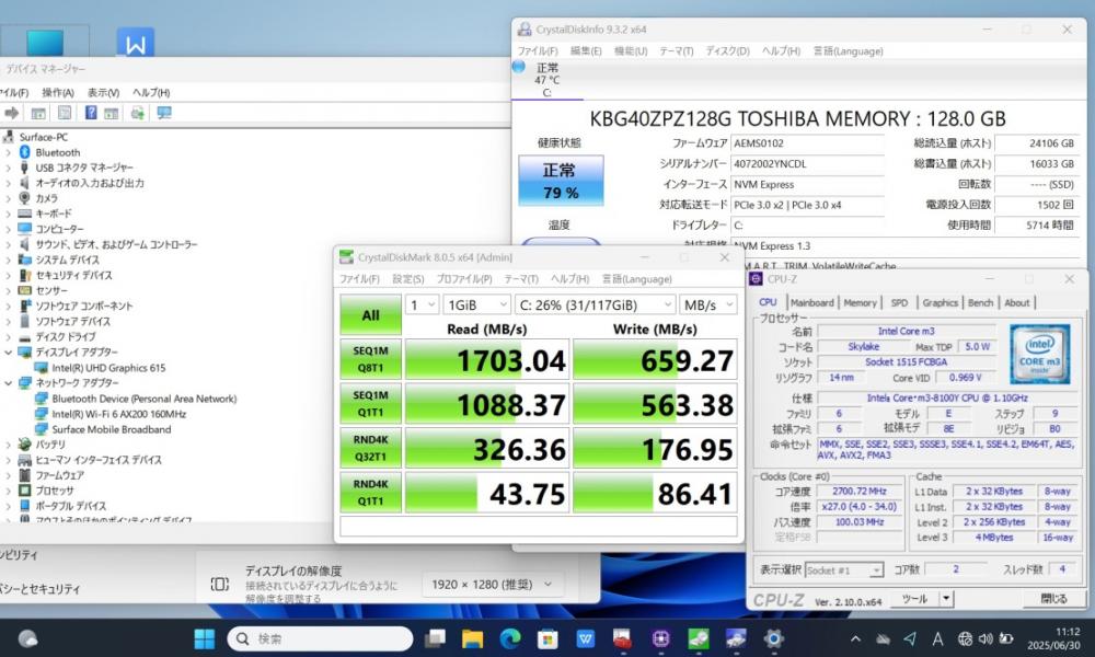 | ハードディスク: 爆速NVMe式 SSD 128GB超高速ドライブを搭載 静かで耐衝撃性に優れ、OSやプログラムなどのソフトの起動速度が大幅に高速化します!! |