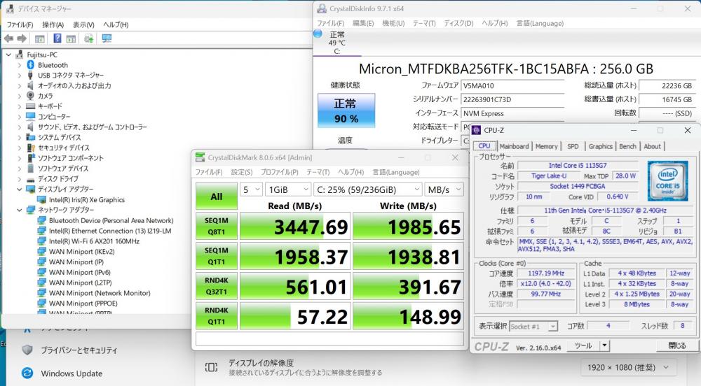| CPU: 超高速 Intel 卓越性能 第11世代Core i5-1135G7 2.4Ghz、 4コア8スレッド (ターボ・ブースト利用時の最大周波数 4.2GHz) |