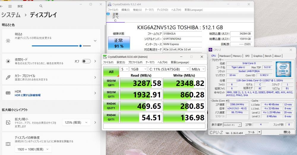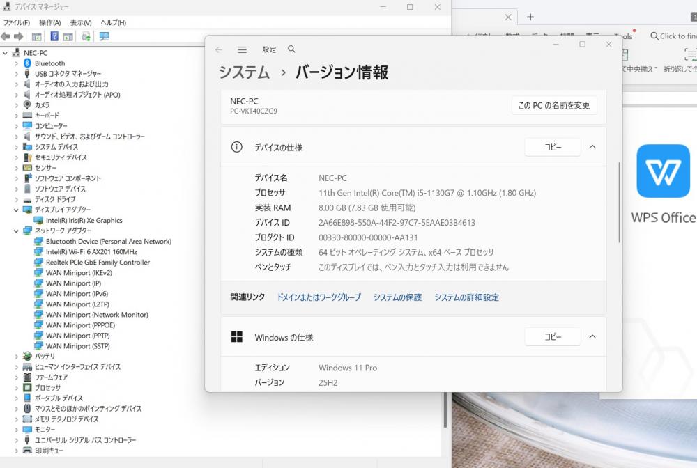 | CPU: 超高速 Intel 卓越性能 第11世代Core i5-1130G7 1.8Ghz、 4コア8スレッド (ターボ・ブースト利用時の最大周波数 4.0GHz) |