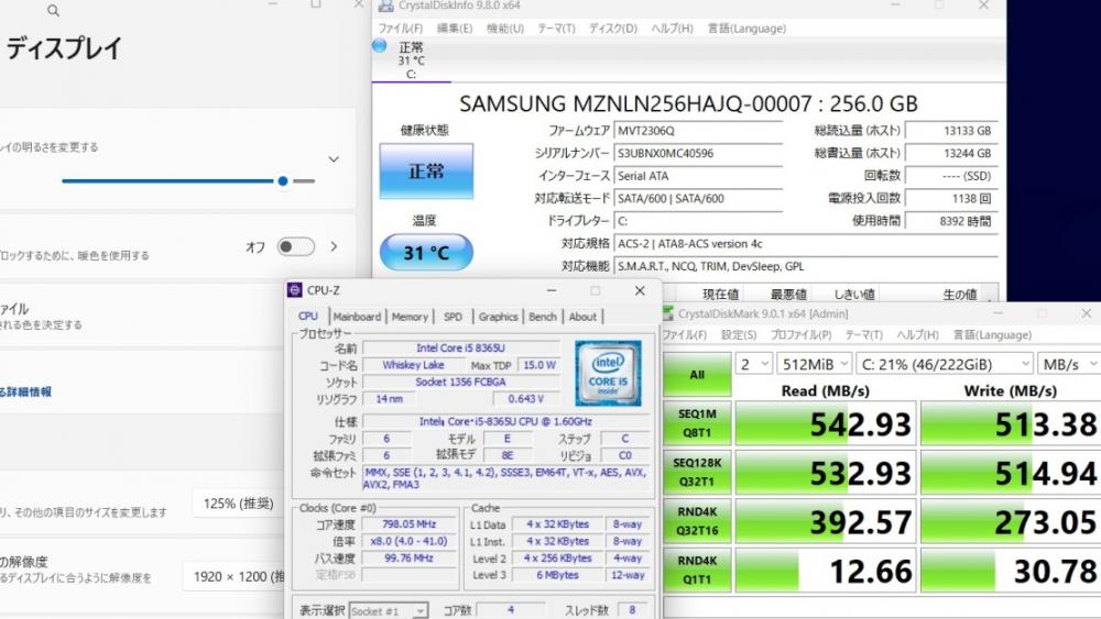CPU:    超高速 Intel 高性能 第8世代Core i5-8365U 1.6Ghz、 4コア8スレッド (ターボ・ブースト利用時の最大周波数 4.1GHz)