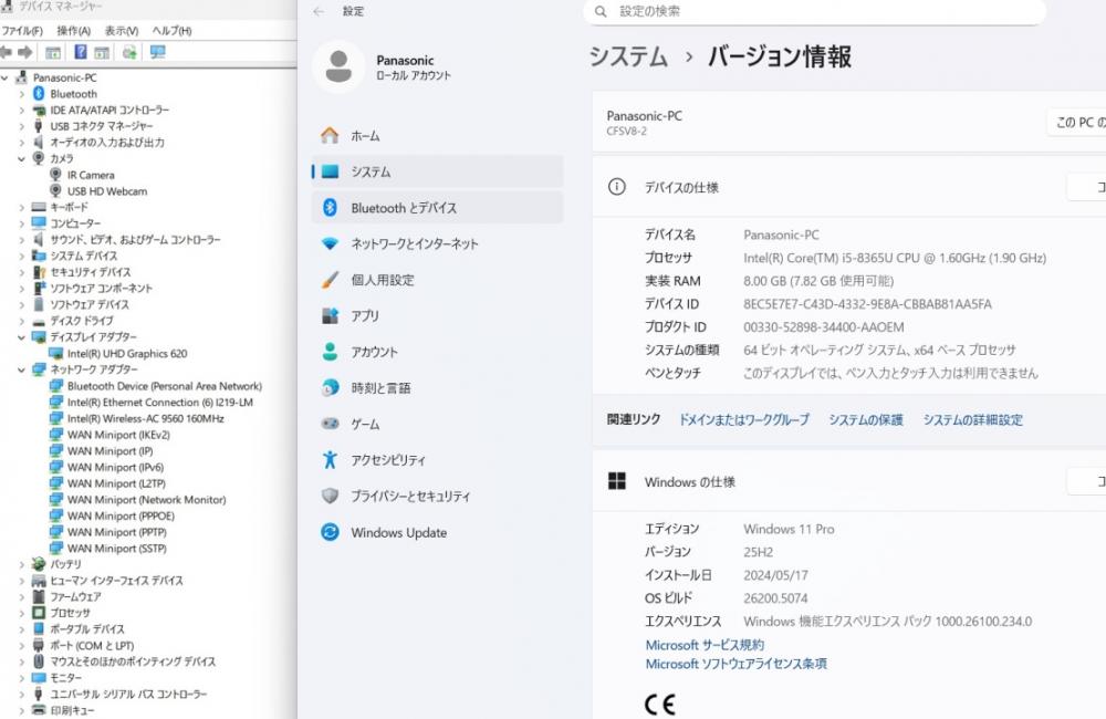中古 フルHD対応WUXGA 12.1型 Panasonic Let's Note CF-SV8RDCVS Windows11 第8世代 i5-8365U 8GB 256GB-SSD カメラ 無線 Office付き 中古パソコン 管:0947s