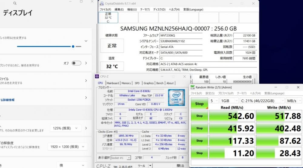 | CPU: 超高速 Intel 高性能 第8世代Core i5-8365U 1.6Ghz、 4コア8スレッド (ターボ・ブースト利用時の最大周波数 4.1GHz) |
