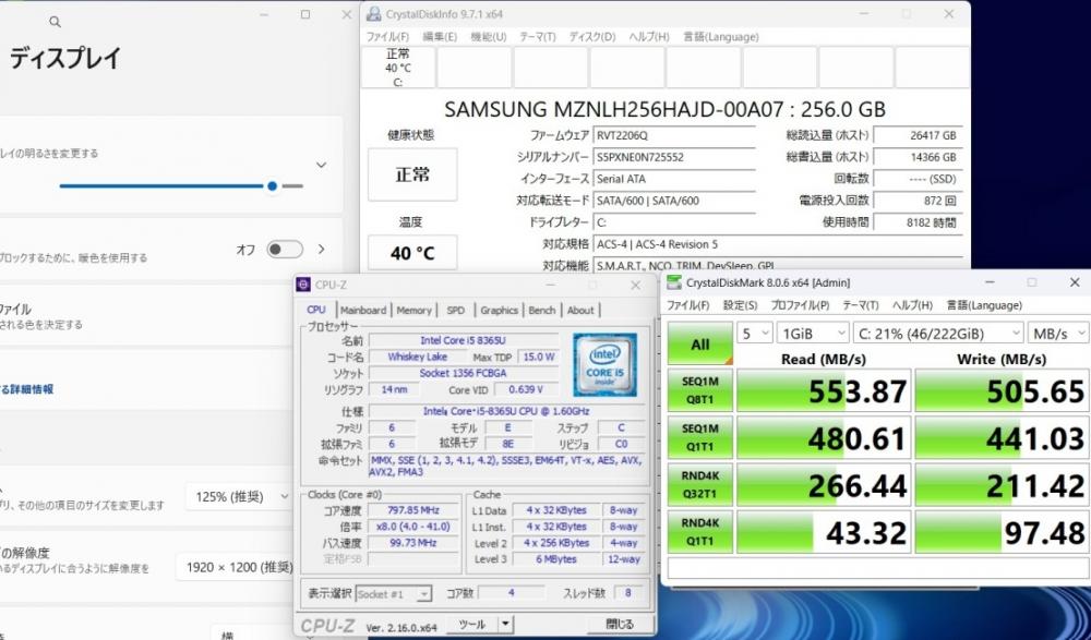 | CPU: 超高速 Intel 高性能 第8世代Core i5-8365U 1.6Ghz、 4コア8スレッド (ターボ・ブースト利用時の最大周波数 4.1GHz) |
