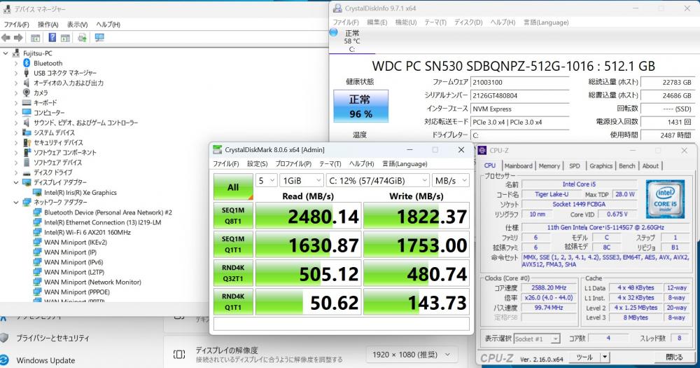 | CPU: 超高速 Intel 卓越性能 第11世代Core i5-1145G7 2.6Ghz、 4コア8スレッド (ターボ・ブースト利用時の最大周波数 4.4GHz) |