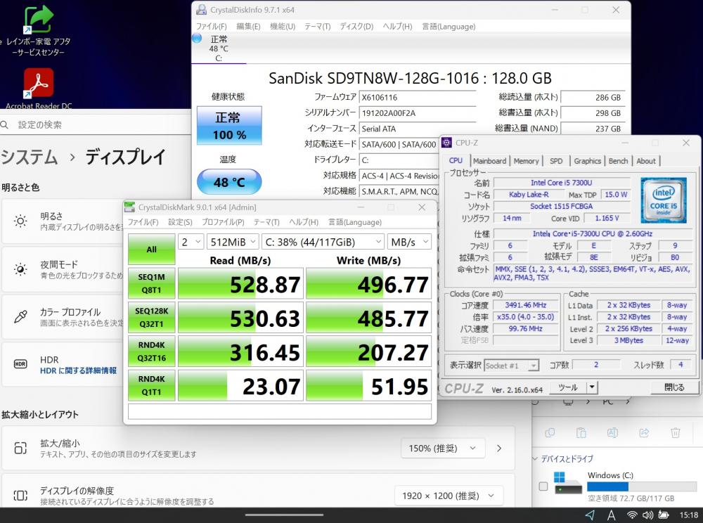 | CPU: 超高速 Intel 七世代Core i5-7300u 2.6Ghz、 (ターボ・ブースト利用時の最大周波数 3.5GHz) |