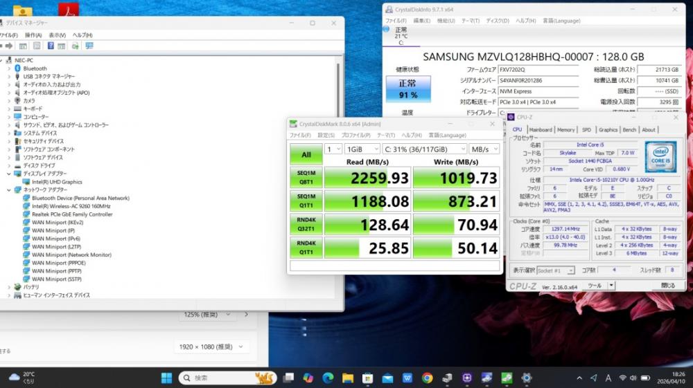 | ハードディスク: 爆速NVMe式 SSD 128GB超高速ドライブを搭載 静かで耐衝撃性に優れ、OSやプログラムなどのソフトの起動速度が大幅に高速化します!! |