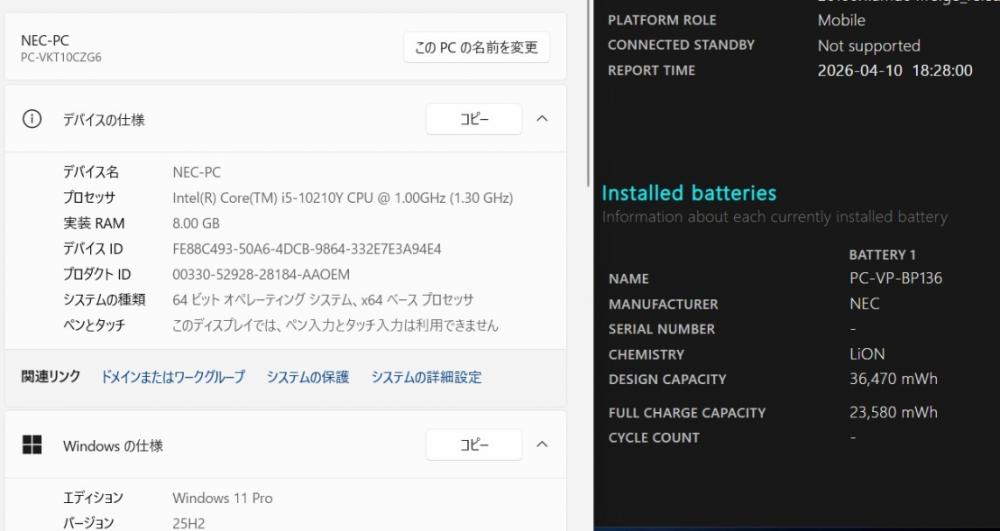 | 型番: NEC VersaPro PC-VKT10C-6 |