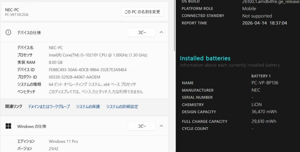 型番:     NEC  VersaPro PC-VKT10C-6